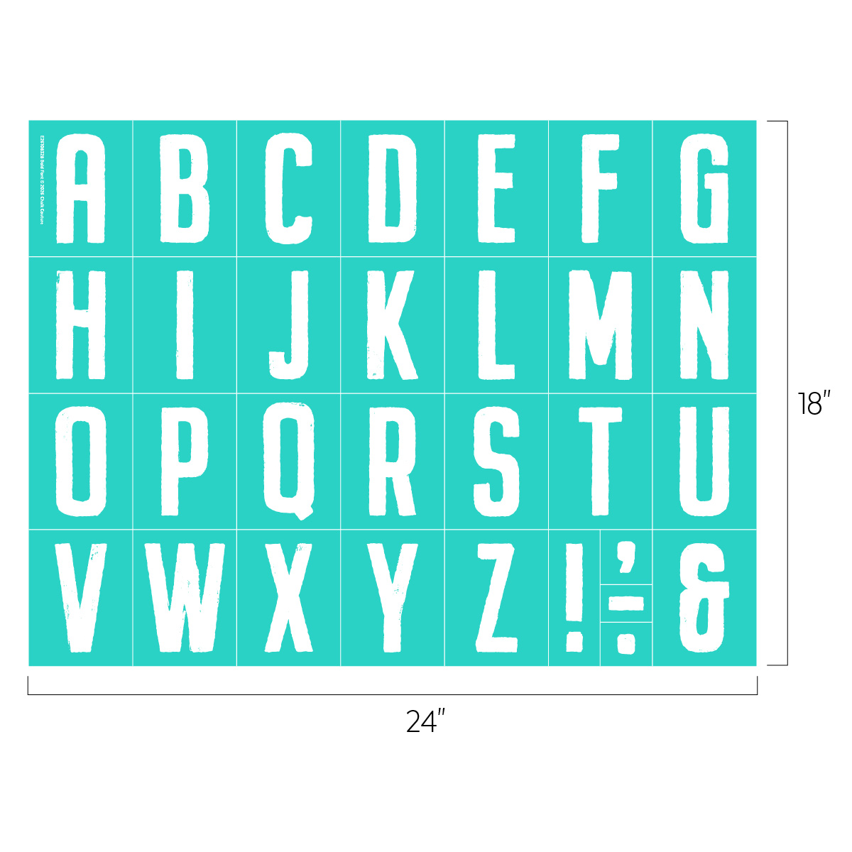 Just like the name suggests, this font is bold. Transfers like this are a staple to have in your collection for personalized projects. Cut along the provided lines to separate the elements for individual use. Each letter measures approximately 3 ⅝".