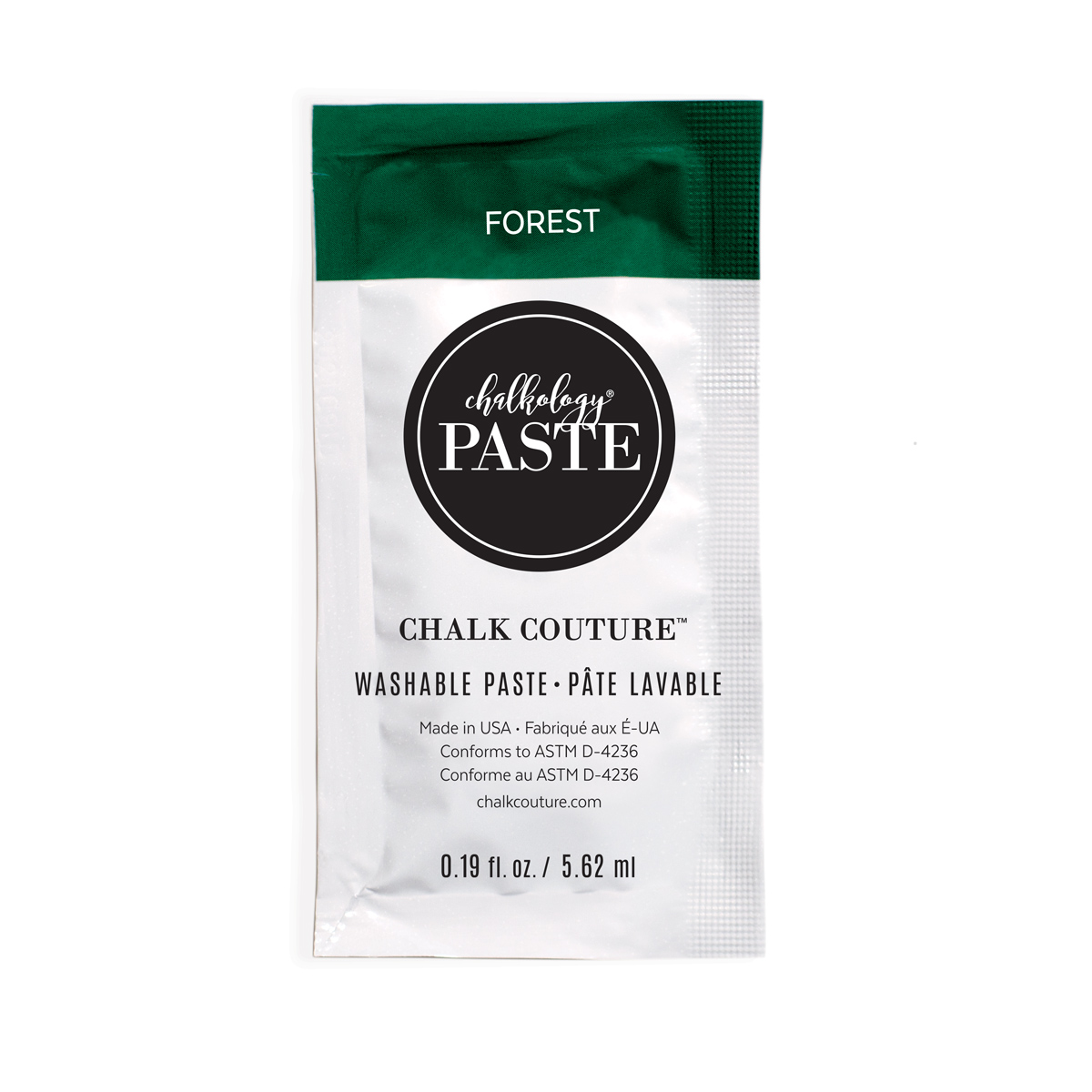 Make a statement with creamy dreamy™ Forest Chalkology® Paste! Perfect for hard surfaces. It’s washable, forgiving when wet, and offers a hard, matte finish. Chalkology Paste Singles include .19 US fl. oz. Chalkology Paste is formulated for use with Chalk Transfer® designs and Chalk Couture™ surfaces. Can also be applied to other nonporous surfaces.