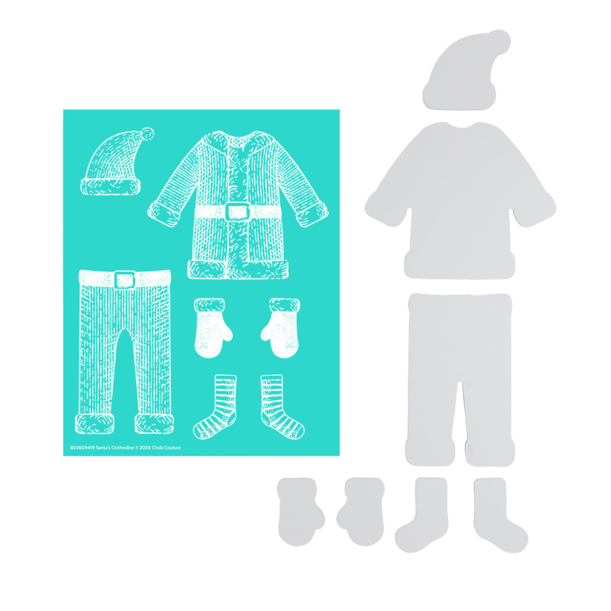While we're decking the halls and hanging our stockings, Santa is getting his outfit clean and ready for the big night! The following items are inlcuded in this bundle:- Santa's Clothesline Chalk Transfer® design- Santa's Clothesline (select items from original surface not included)