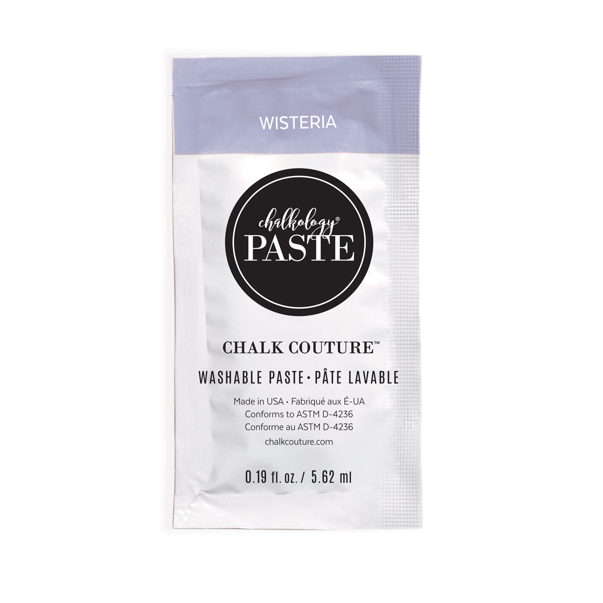 Make a statement with creamy dreamy™ Wisteria Chalkology® Paste! Perfect for hard surfaces. It’s washable, forgiving when wet, and offers a hard, matte finish. Chalkology Paste Singles include .19 US fl. oz. Chalkology Paste is formulated for use with Chalk Transfer® designs and Chalk Couture™ surfaces. Can also be applied to other nonporous surfaces.