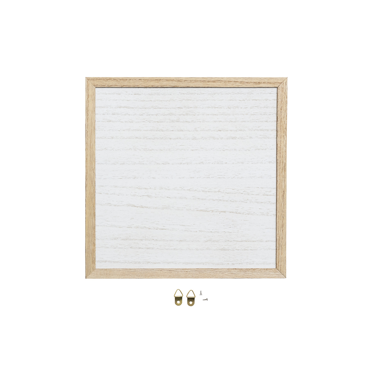 A classic frame to have on hand for any occasion! This surface features a whitewash wood grain finish with a natural wood grain frame. It is one-time use and measures approximately ¼" thick. 2 wall hangers and 2 screws included, assembly required.