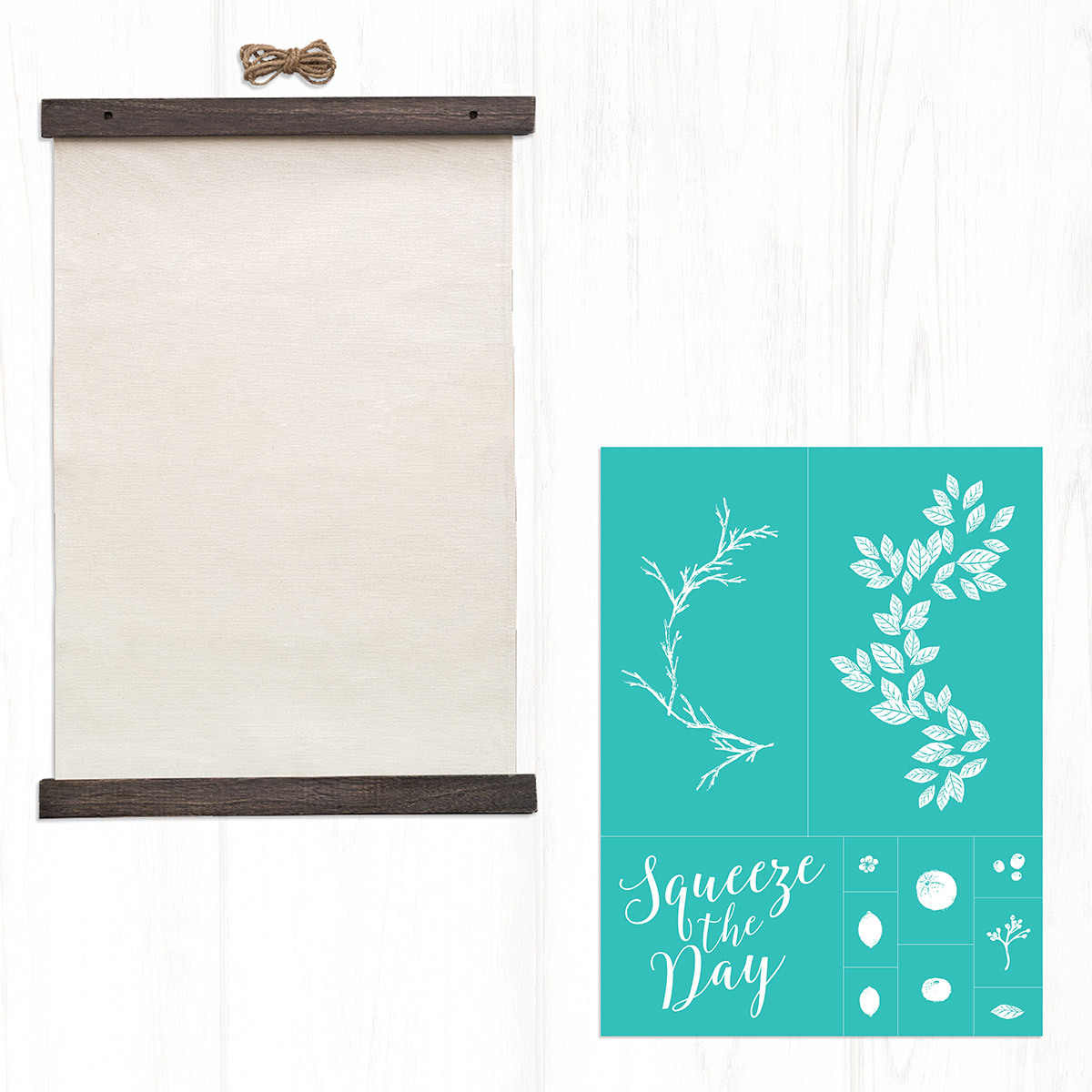 Hanging Banner 21” x 29”: The graceful 21" x 29" canvas Hanging Banner is sure to turn heads with its unique design. Perfect for use with Chalkology™ Ink, it includes magnetic wooden frame pieces and twine for hanging.